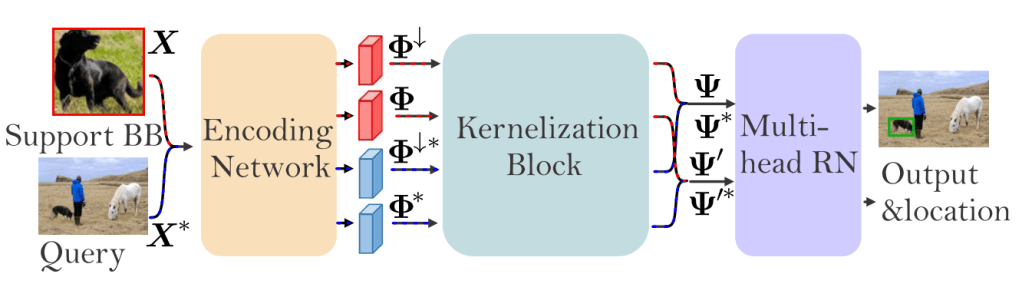 - Kernelized Few-Shot Object Detection With Efficient Integral Aggregation: An Encoding Network encodes support and query images. The Kernelization block forms the linear, polynomial and RBF kernelized representations from features extracted within support regions of support images. These features are then cross-correlated against features of a query image to obtain attention weights, and generate query proposal regions via an Attention Region Proposal Net.