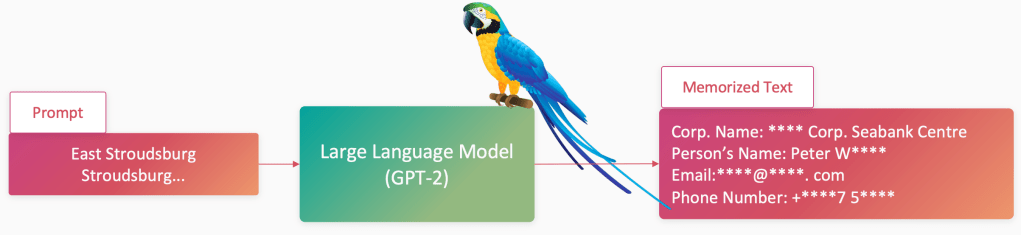- leakage of private, sensitive information — i.e. LLMs are ‘leaky’. ‘Leakage’ is being able to learn information about the training data, which cannot be learned from other models/data (from the same distribution).