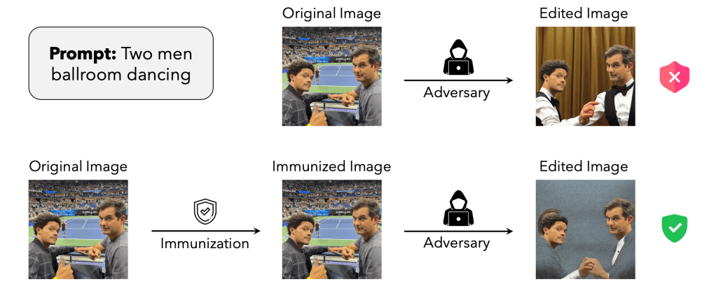 To prevent malicious editing of images using advanced AI models, the authors propose a way to “immunize” images. This involves adding tiny, invisible changes to the image that disrupt the AI model’s ability to edit it, causing it to produce unrealistic results.