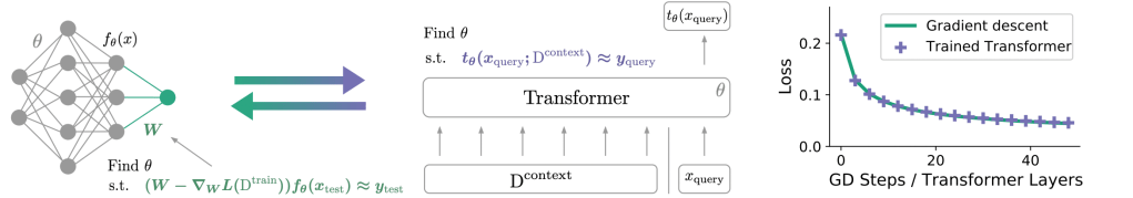 They found that Transformers trained on simple regression tasks often learn in a way that mimics gradient descent. This suggests that Transformers act as “mesa-optimizers,” learning models through gradient descent during their forward pass. This insight helps us better understand how Transformers learn in context, especially in regression tasks.