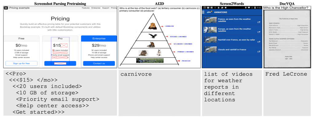 2) Pix2Struct: Screenshot Parsing as Pretraining for Visual Language Understanding (paper)