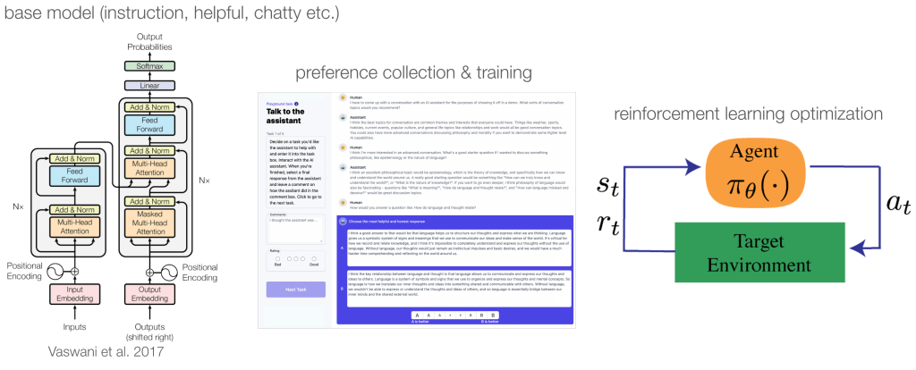 This tutorial begins with a history of preference models and provides a technical overview of Reinforcement Learning from Human Feedback (RLHF). It covers the three key phases: starting with a language base model, preference collection and training, and Reinforcement Learning (RL) optimization.