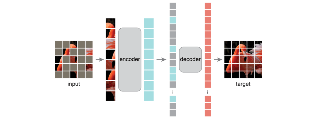 To be more specific, modern hierarchical transformers end up slower due to overhead from adding spatial bias through vision-specific modules like shifted windows or convs. In contrast, Hiera is designed to be as simple as possible. It consists entirely of standard ViT blocks. To add spatial bias, the authors opt to teach it to the model using a strong pretext task like MAE (pictured here) instead. For efficiency, the authors use local attention within “mask units” for the first two stages and global attention for the rest.
